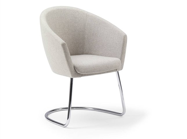 Dat is Megan. Uitnodigend en elegant. Deze comfortabele kuipstoel is geschikt voor vergaderzaal of eetkamer. In de lage uitvoering is Megan ook als fauteuil in te zetten. De kuip is gesloten. Veilig. Het onderstel open. Sierlijk en rank. Megan is er als 4-poots stoel of als sledestoel. Als fauteuil en als conferentiestoel op wielen. Het onderstel is verchroomd of gepoedercoat. De kuip is verkrijgbaar in verschillende stoffen of leer.