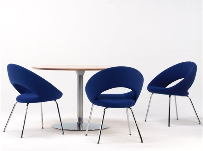 Elegant en comfortabel. Hedendaags en luxueus. In vergaderzaal of eetkamer. Actief zitten of gewoon ontspannen door de ronde, goed aansluitende rug. Zowel in stof als in leer verkrijgbaar.