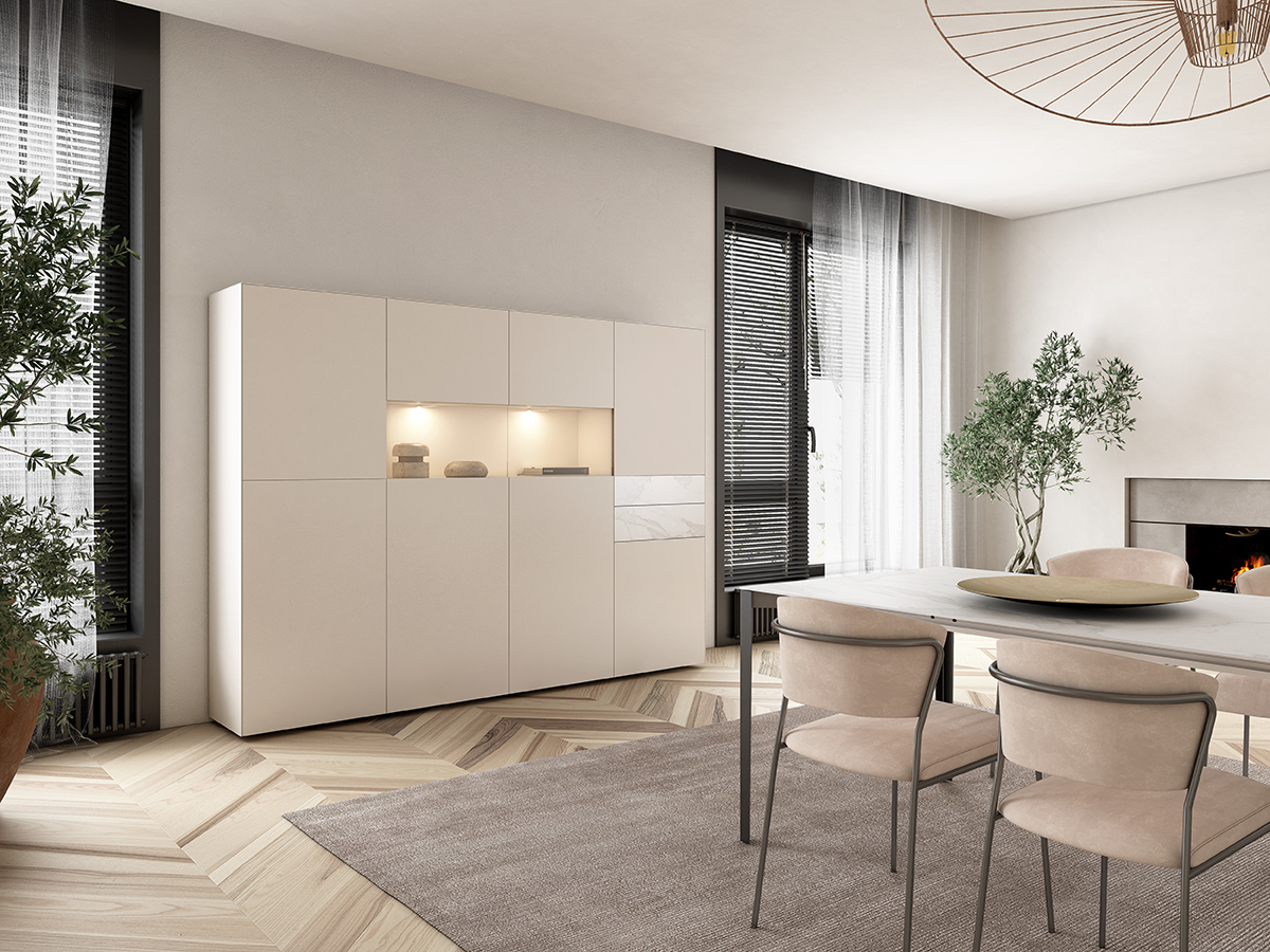 Omarm het minimalistische design van de Yumè Collectie van Crest, geheel ontworpen door Piet Vanasten. De collectie combineert natuurlijke patronen met strakke lijnen en wordt volledig op maat geproduceerd in Europa (Portugal). De afmetingen zijn 156 cm hoog en 41 cm diep, met breedtes van 90 tot 300 cm of een veelvoud daarvan.