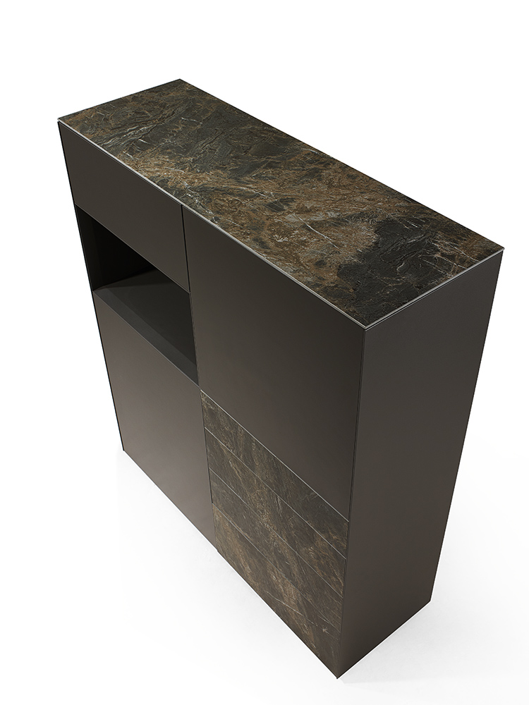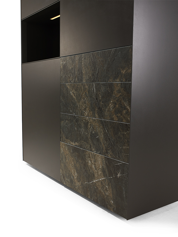 Omarm het minimalistische design van de Yumè Collectie van Crest, ontworpen door Piet Vanasten. De collectie combineert strakke lijnen met natuurlijke patronen en wordt volledig op maat in Europa (Portugal) vervaardigd. Verkrijgbaar in diverse breedtes (90 tot 300 cm) en hoogtes/dieptes van 139 x 41 cm. U kunt kiezen uit materialen zoals structuurlak, handgepolijste hoogglanslak, glas of keramiek, met meer dan 1000 RAL/NCS-kleuren. Voor keramische bladen wordt Neolith-keramiek gebruikt, krasvast en 100% UV-bestendig.