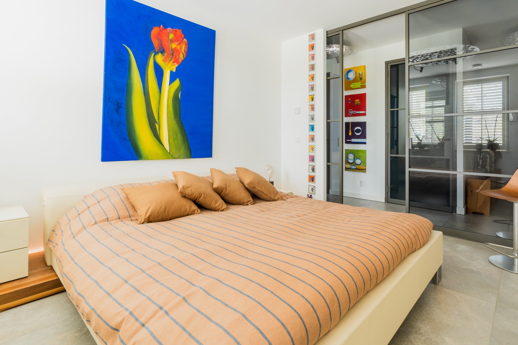 Voor onze garderobekast gaf Van Waay ook uitstekend advies. Ons nieuwbouwappartement heeft hoge plafonds, dus we wilden zoveel mogelijk bergruimte in de hoogte benutten. Samen met Raimond kozen we voor een op maat gemaakte garderobekast van “Noteborn”. De kleur moest overeenkomen met ons Hülsta-bed “Lilac”. Achter de schuifdeuren van de kast hebben we een lichtstrip aangebracht, aan te sturen via ons domoticasysteem. Het resultaat is perfect en we zijn zeer tevreden.”