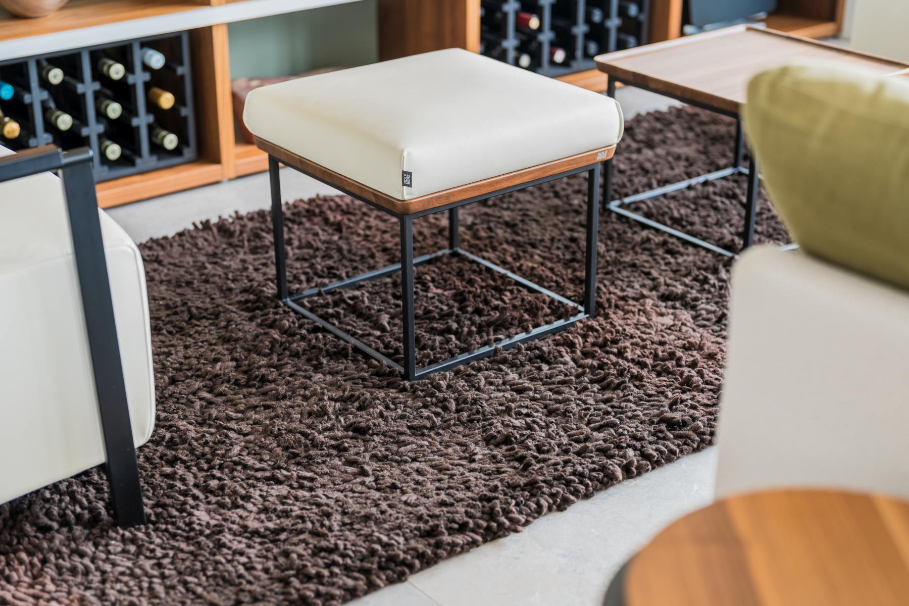 Voor de fauteuils wilden we geen grote objecten. Raimond adviseerde prachtige stoeltjes van Harvink. We wilden dezelfde lederkleur en kwaliteit als de bank en voetenbankjes van Rolf Benz. Hij zorgde er ook voor dat het Rolf Benz-leder naar Harvink werd gestuurd voor een uniform geheel.